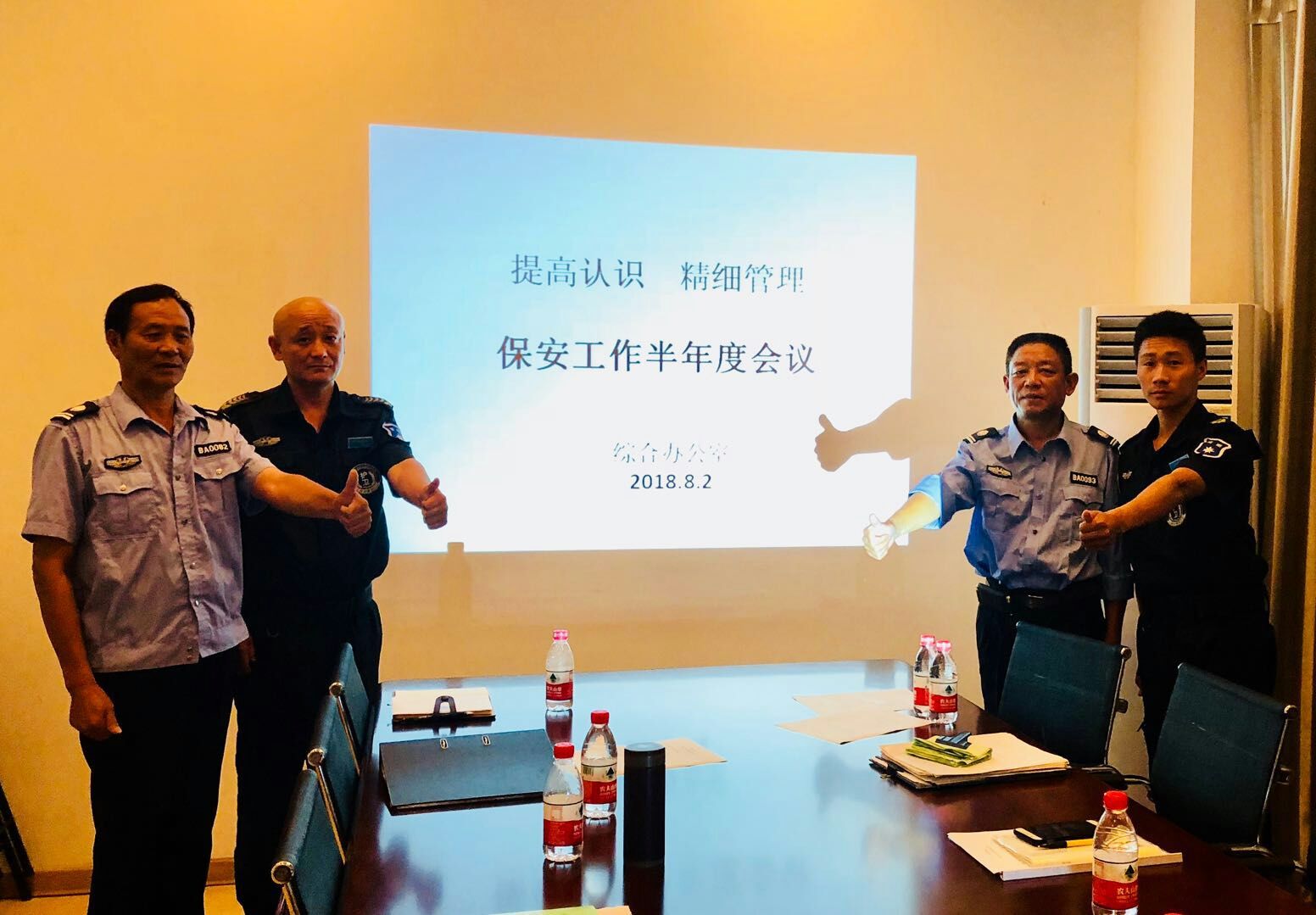為了加強公司安保工作的對內對外溝通,提升安保工作的服務質量,2018年8月2日上午,以“提高認識,精細管理”為主題的朱養心2018安保半年度會議在下沙二樓會議室順利召開。四位保安著裝整齊,精神飽滿,積極參加了本次會議。