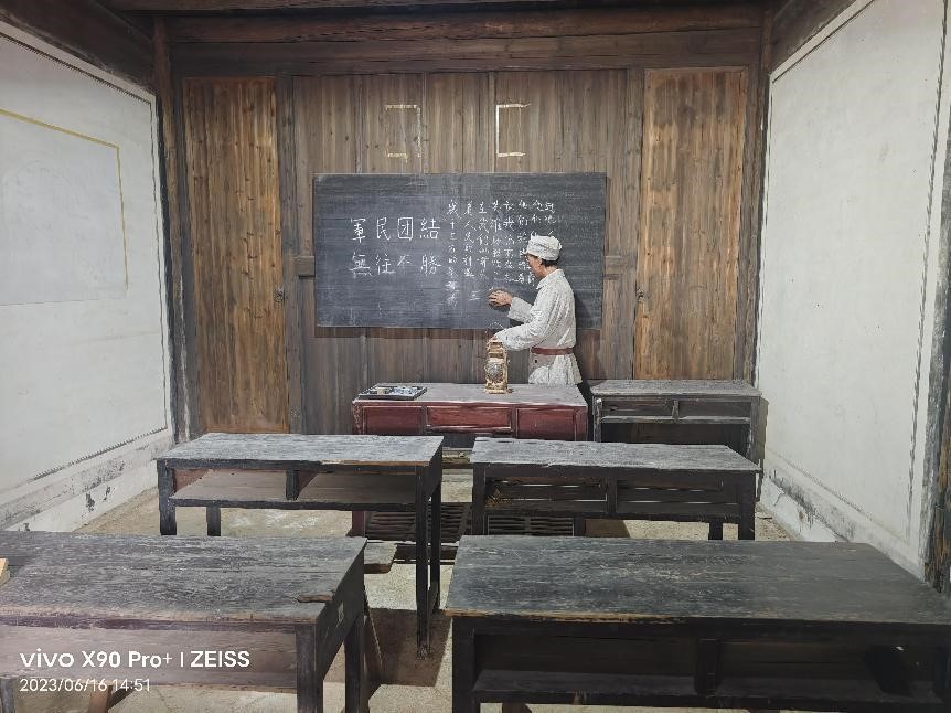 舊址陳列館內的每一張圖片、每一段文字、每一件遺物無不記載著壯烈感人的故事,它不僅痛斥侵略者的殘忍和無情,更顯示出中華民族的勇敢無畏、一往無前。浙東行政公署舊址坐落在已經有130多年歷史的古樸幽靜的院子里,為培養高素質的黨政軍人才,浙東抗日軍政干校成立,并于1945年4月遷至橫坎頭村上新屋。舊址中現有序廳、校務處、總務處、軍事教室、文化教室、影視播放廳等,生動地再現了該校學員當年的學習、生活場景。跨越百年的學堂像一位精神矍鑠的老者,向后人們講述著四明兒女保家衛國的紅色往事。黨員們追憶著先烈們為新中國不屈奮斗的崢嶸歲月,在此重溫了那段波瀾壯闊的革命歷程。